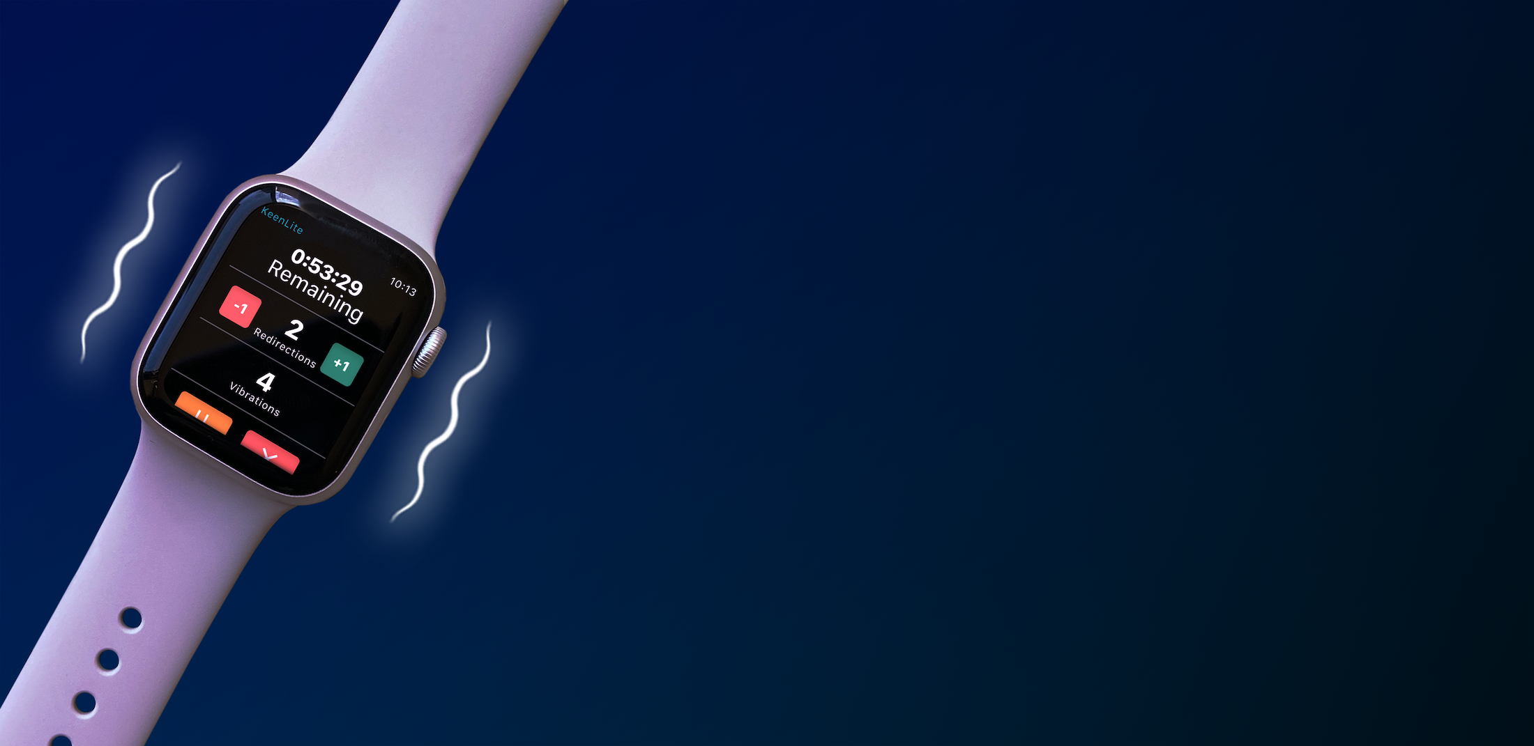 KeenLite Training Sessions are designed to build conscious awareness of where your hands are. When KeenLite detects the behavior, the vibration prompts you to choose healthier soothing mechanisms.