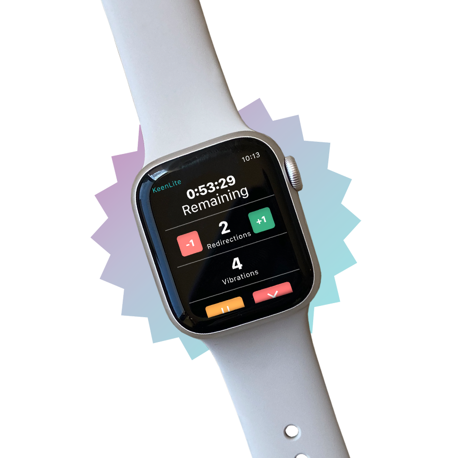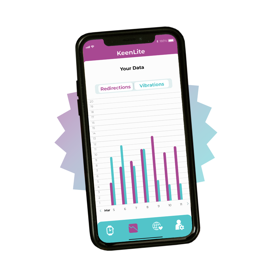 KeenLite Training Sessions are designed to build conscious awareness of where your hands are. When KeenLite detects the behavior, the vibration prompts you to choose healthier soothing mechanisms.